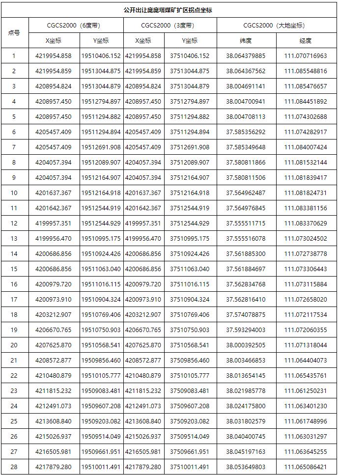 本次公告同時在中華人民共和國自然資源部網(wǎng)站、山西省自然資源廳網(wǎng)站、全國公共資源交易平臺(山西?。ⅰ吨袊匀毁Y源報》、《山西日報》以及交易場所發(fā)布。