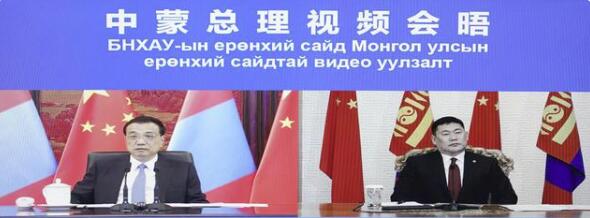 10月12日,國務(wù)院總理李克強在北京中南海紫光閣同蒙古國總理奧云額爾登舉行視頻會晤。
