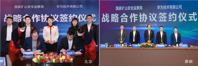 1月27日,國家礦山安全監(jiān)察局(以下簡稱國家礦山安監(jiān)局)和華為技術有限公司(以下簡稱華為)通過視頻會議的方式,舉行了戰(zhàn)略合作簽約儀式。